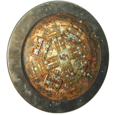 Doing Repetitive Tasks found metal and glass 18" diameter x 3" (wall piece) 2005 o